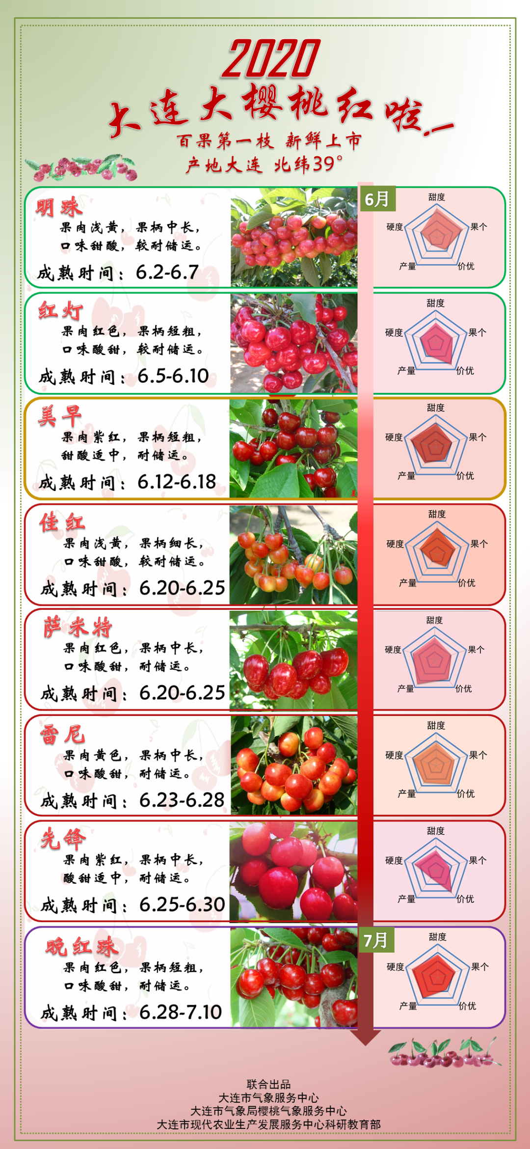 5月27日,大连市现代农业发展服务中心科研教育部、大连市气象服务中心、大连市气象局樱桃气象服务中心,联合发布今年首个大樱桃气象预报。